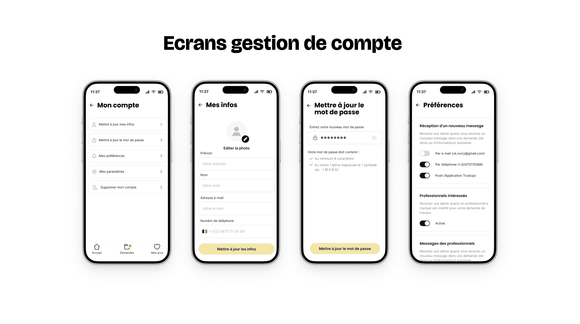 La mise en place de l'habillage graphique et la déclinaisons des différents écrans se font suivre par les testings de prototypes qui peuvent être réalisés pour avoir les premières impressions des utilisateurs avant le lancement en production.